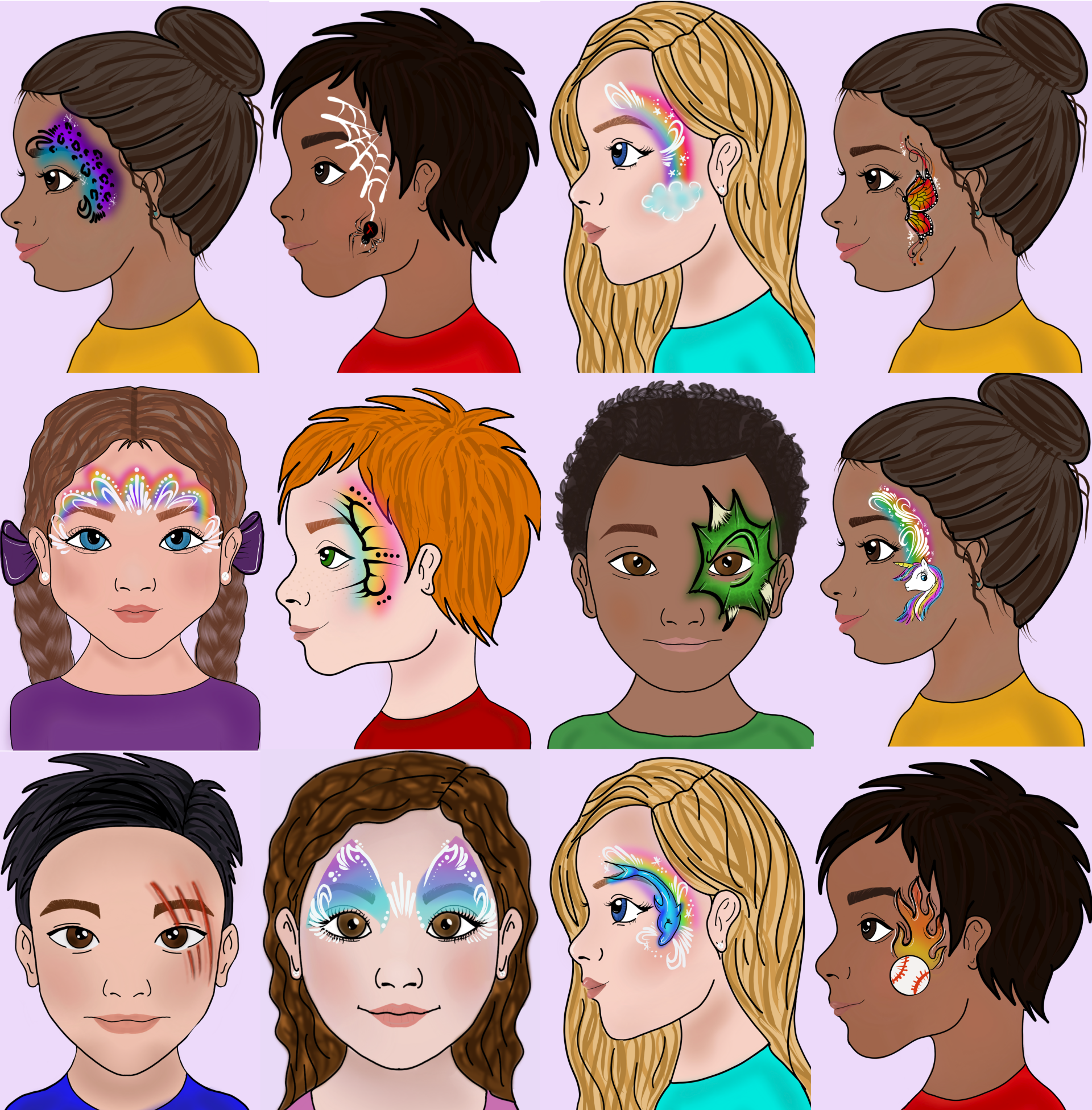 When you visit Smiles, By Magic Brush, choosing your face painting design is a breeze! We provide a clear, visual menu showcasing a fantastic selection of our most popular designs. This makes it easy for children to quickly pick their favourite, ensuring the fun keeps flowing smoothly, especially at busy events.